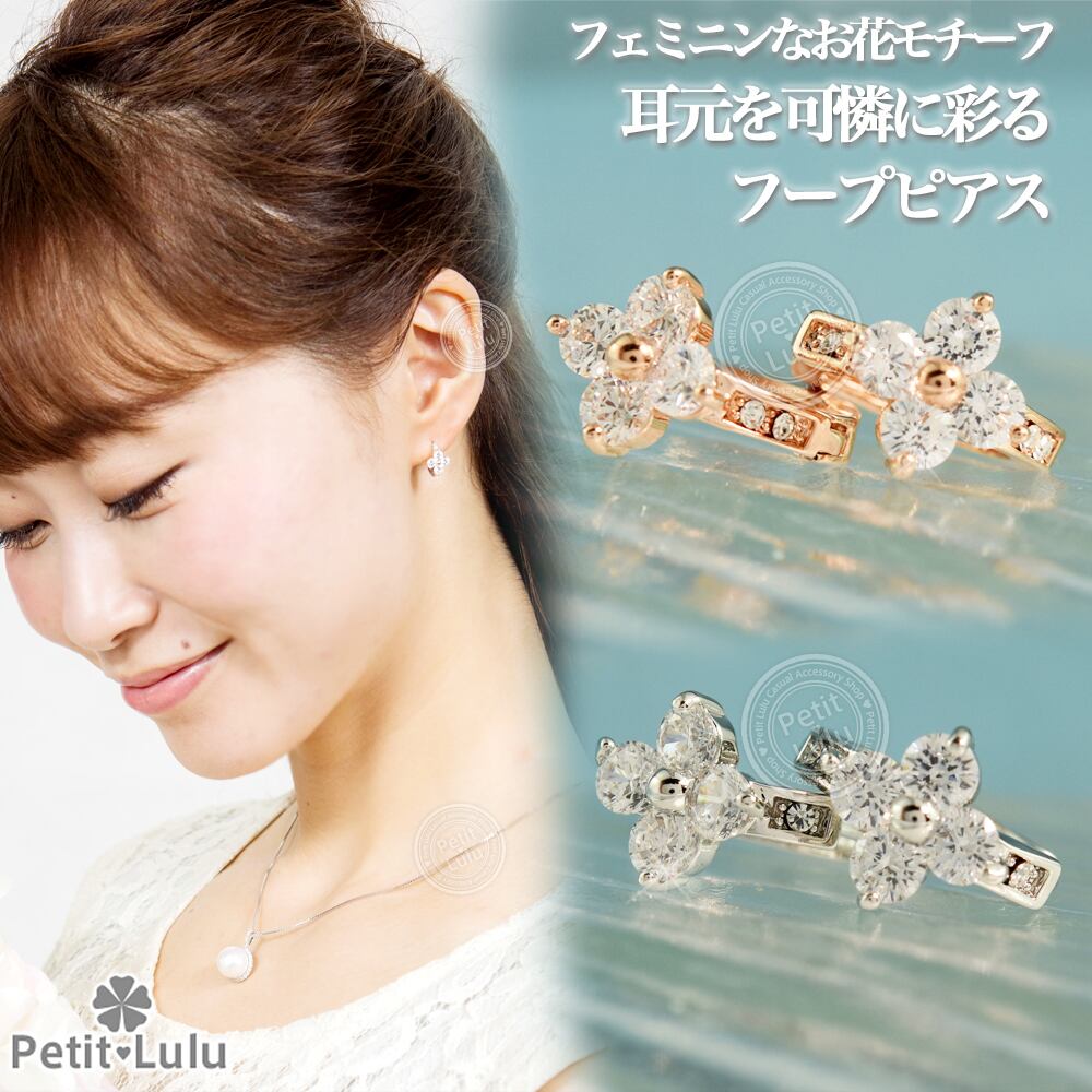 ピアス レディース フープピアス スワロフスキー フラワー 花 k18 18金RGP 18k プチルル 誕生日 プレゼント ギフト 記念日