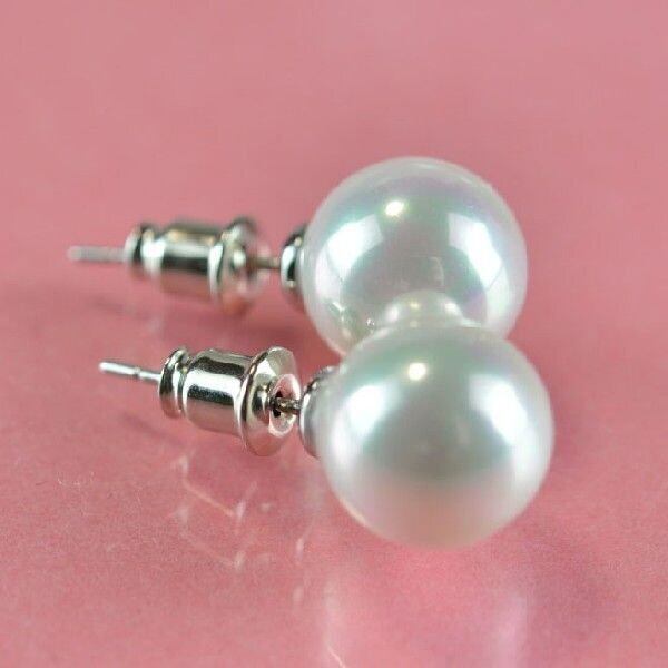 10mmプラチナ貝パールピアスです。 ピアスは、よりしっかり留まって落としにくい安心のダブルロックキャッチ付きです。