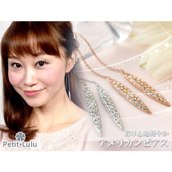 今人気急上昇中のアメリカンピアス。チェーンをピアスホールに通すので、キャッチをする必要がなく、着けるのも簡単。さらにチェーンの長さは自分好みに調節できるというすぐれもの。さりげなくつけておしゃれな女性をアピールできます。