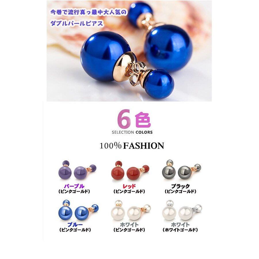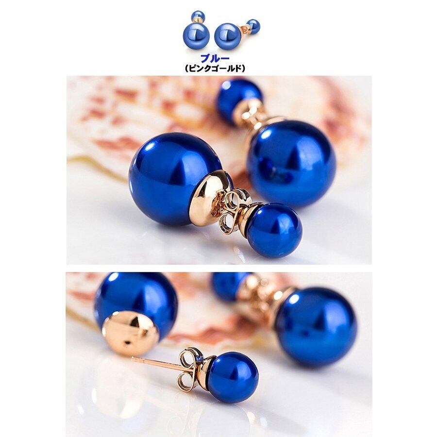 ピアス レディース バックキャッチ パール 真珠 ダブルパールピアス 人気 6色 18K 18金RGP 誕生日 プレゼント ギフト 記念日