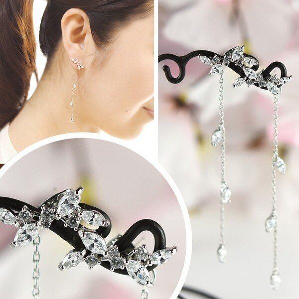 ピアス レディース AAA級 ダイヤモンドCZ 木の葉 しずく フープ フリンジ 揺れる 18金RGP 925銀 誕生日 プレゼント ギフト 記念日