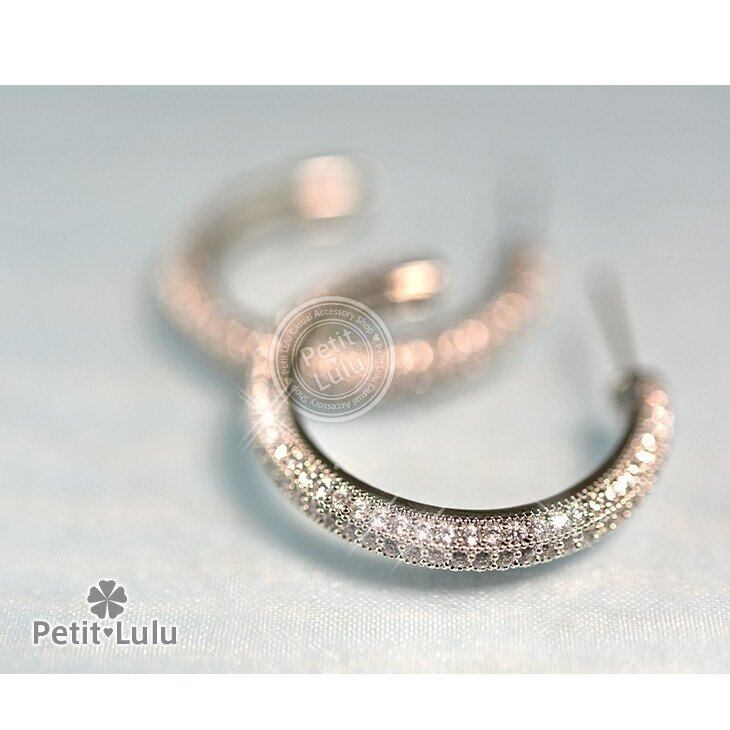 3列のラインにダイヤモンドをパヴェ留めしたゴージャスなフープピアスです。