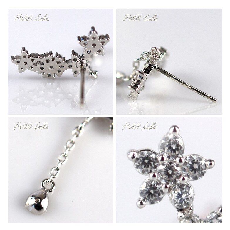 ピアス レディース AAA級 ダイヤモンドCZ フラワー 桜 春 フェミニン しずく 揺れる 18KRGP 925銀 誕生日 プレゼント ギフト 記念日