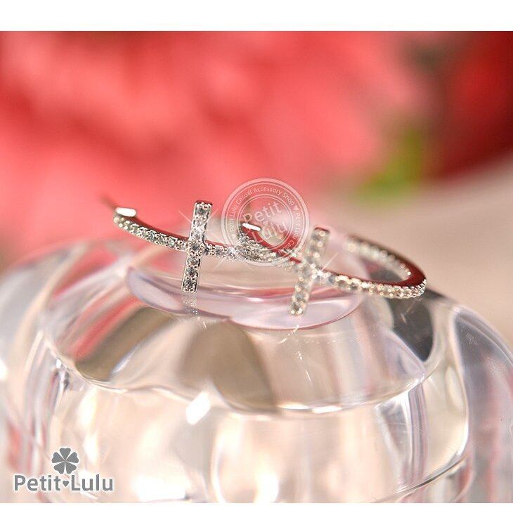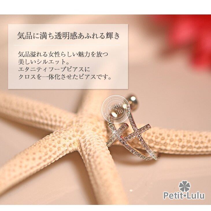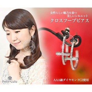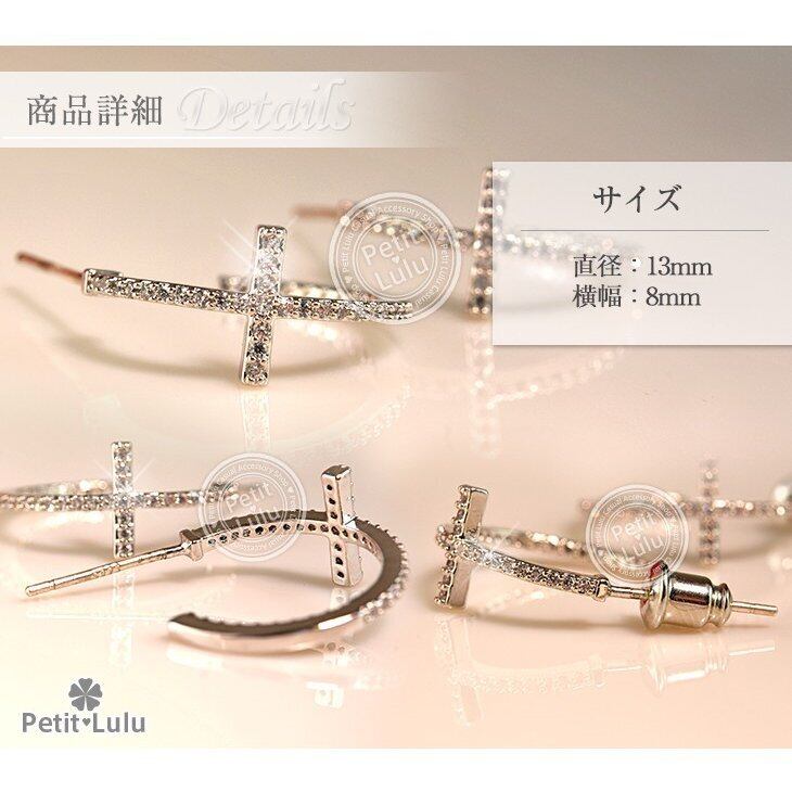 ピアス レディース AAA級ダイヤモンドCZ エタニティ クロス フープ 18KRGP 誕生日 プレゼント ギフト 記念日