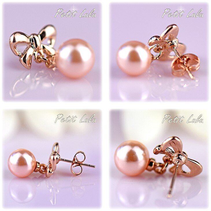 ピアス レディース リボン パール 揺れる ぷっくり リボン 大ぶり スワロフスキー18金RGP 誕生日 プレゼント ギフト 記念日