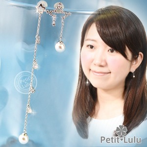 ピアス レディース 真珠 パール 星 スター 揺れる 非対称デザイン ロングチェーン 18金RGP シルバー925 誕生日 プレゼント ギフト 記念日