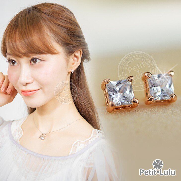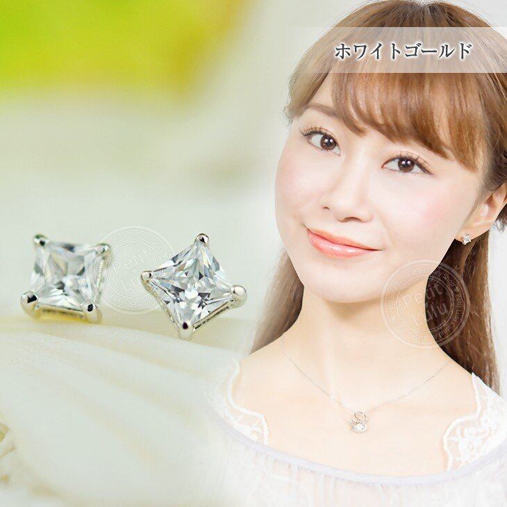 ピアス レディース 最高級スワロフスキー スクエア ダイヤ シンプル 18KRGP 2色展開 誕生日 プレゼント ギフト 記念日