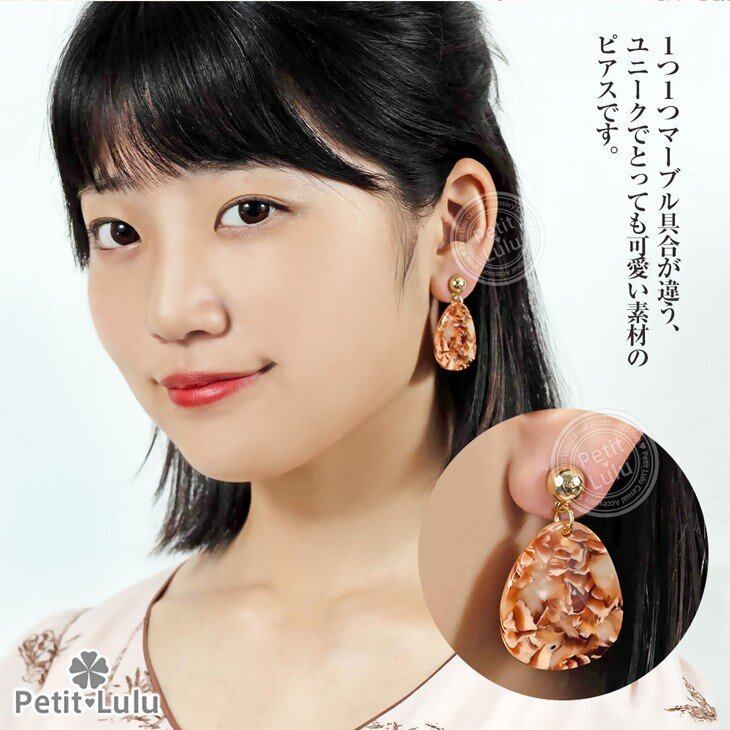 イエローゴールドとマーブル調の組み合わせが上品な女性らしい雰囲気のピアスです。