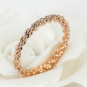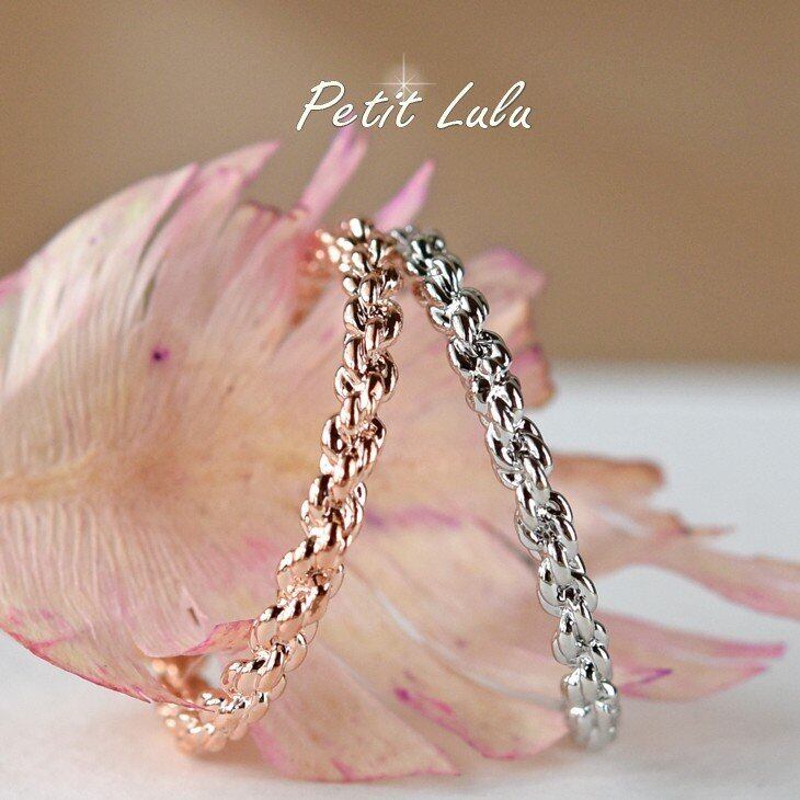 絶妙なコーディネート感覚でさらりと身に着けているシンプルな地金リングはかわいい。上質素材を繊細に、そして丁寧にツイストさせエレガントなディティールに、繊細さを保ちつつ、一つでも着けられるように柔らかいボリュームを出して存在感をプラス。