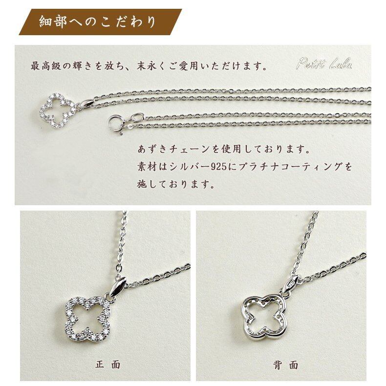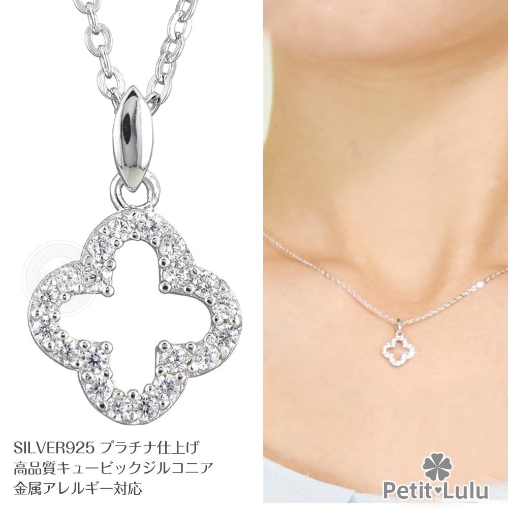ネックレス レディース ダイヤモンドCZ プラチナ仕上げ シルバー925 クローバー 最高級スワロフスキー 誕生日 プレゼント ギフト 記念日