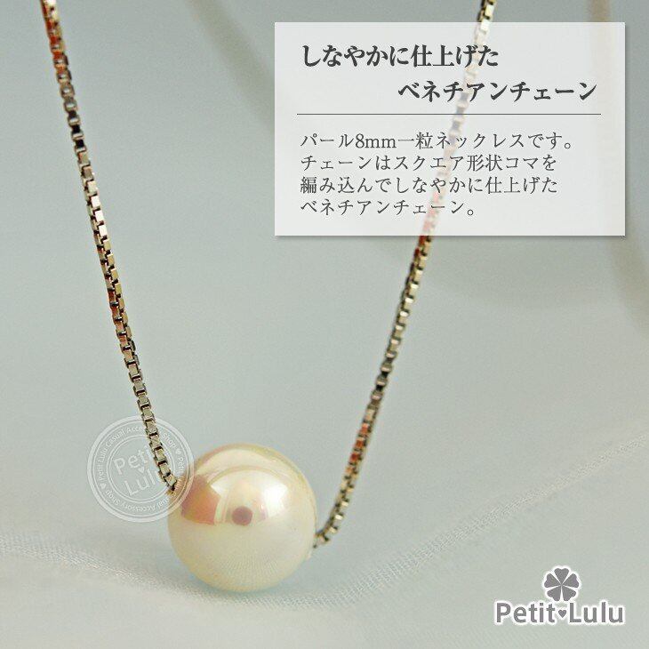 パール8mm一粒ネックレスです。チェーンはスクエア形状コマを編み込んでしなやかに仕上げたベネチアンチェーン。繊細なチェーンとシンプルパールの組み合わせはさりげなく控えめな上品さがかもしだされます。重ね付けにもおススメです。