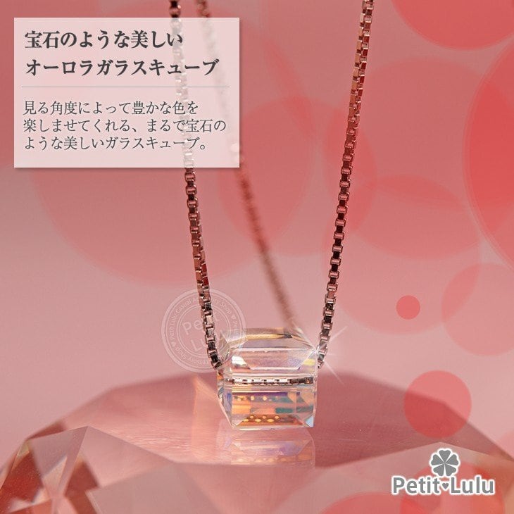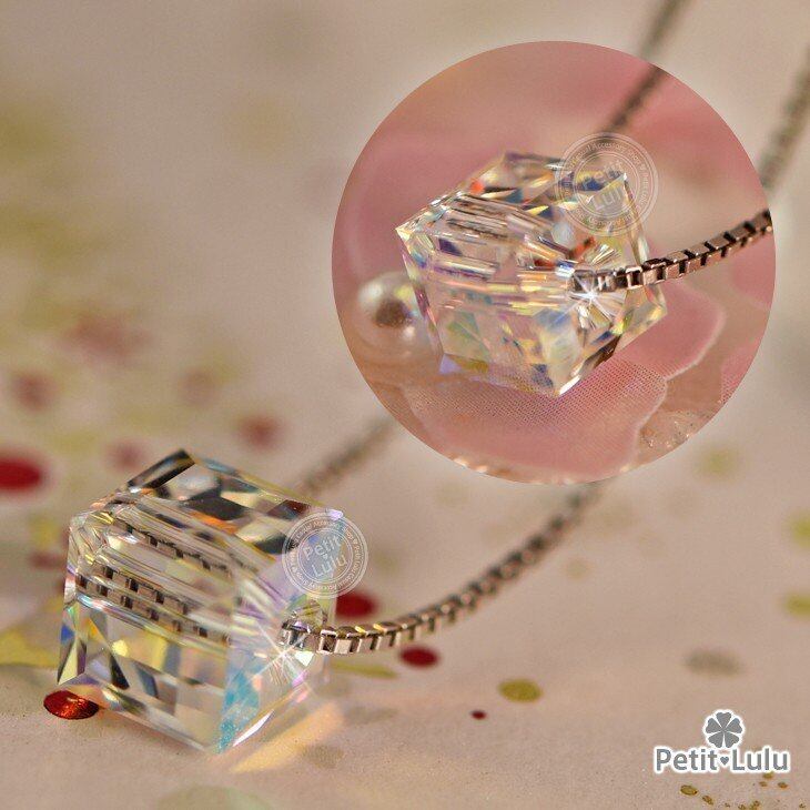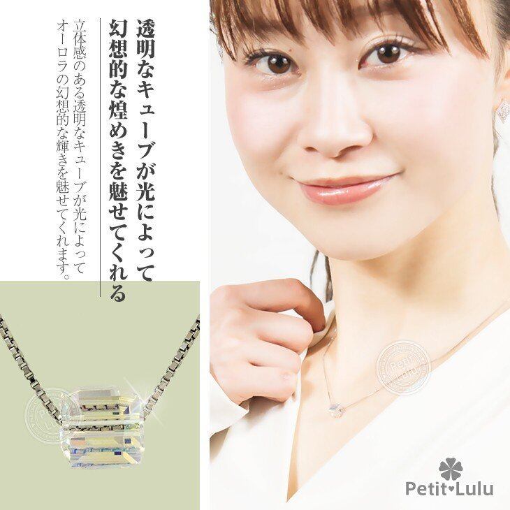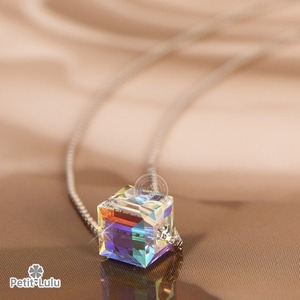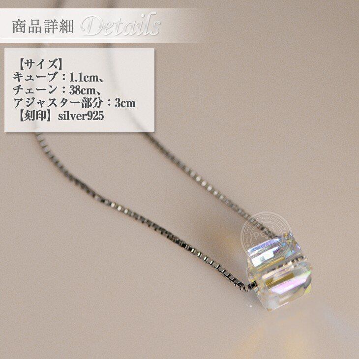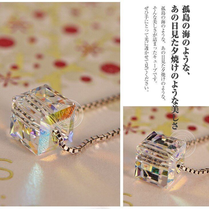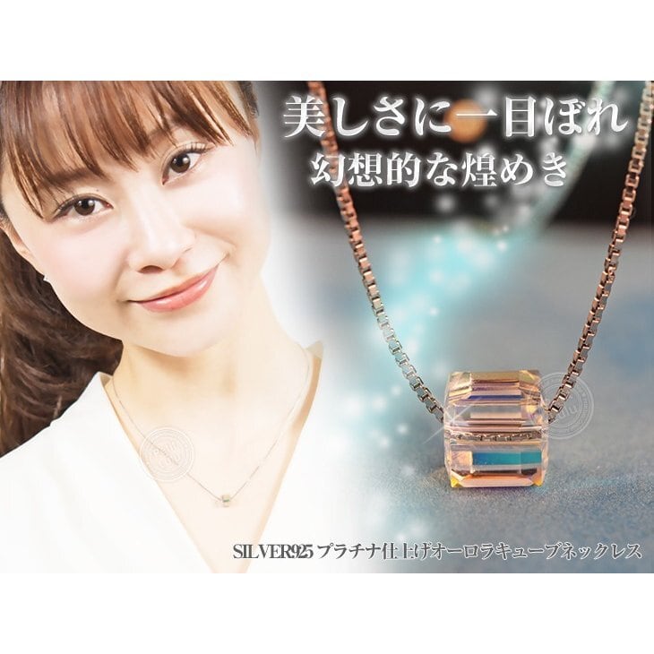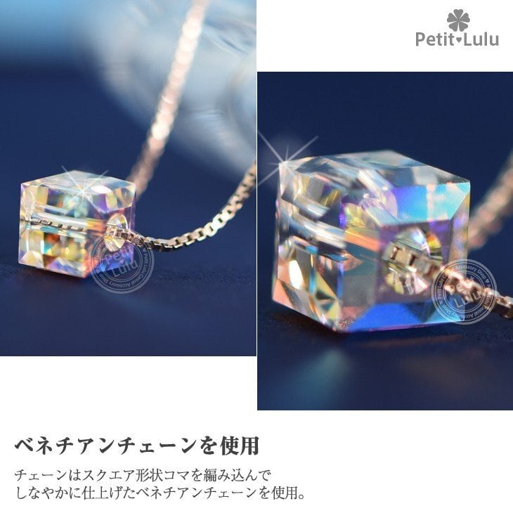 ネックレス レディース プラチナ仕上げ シルバー925 キューブ スクエア オーロラ クリスタル 誕生日 プレゼント ギフト 記念日