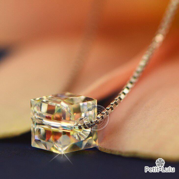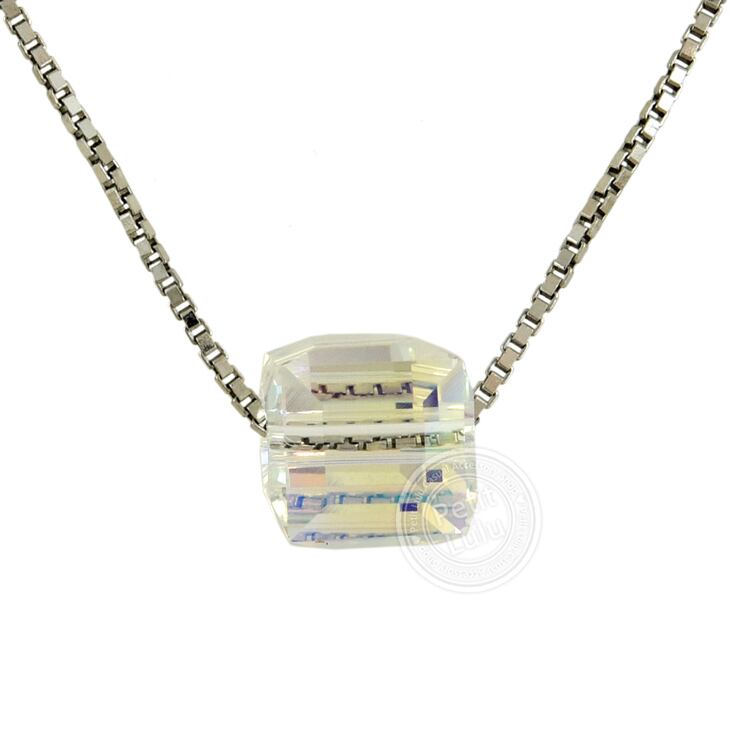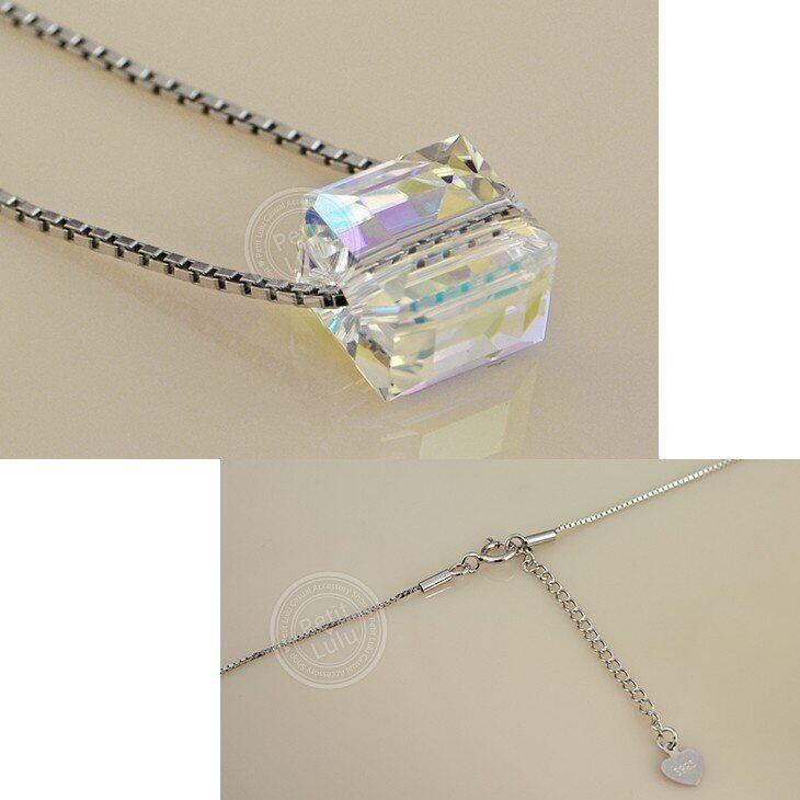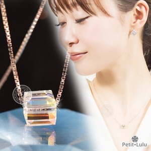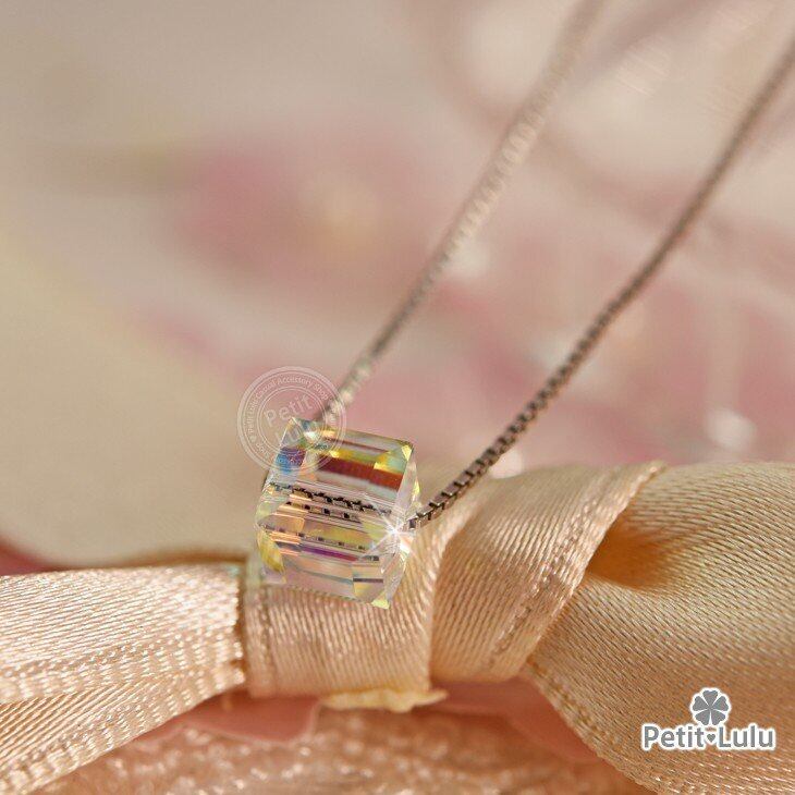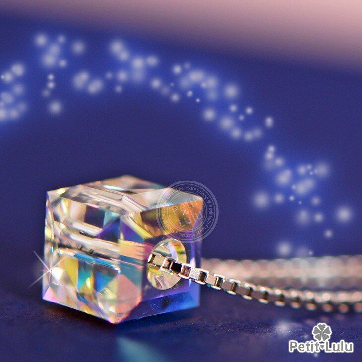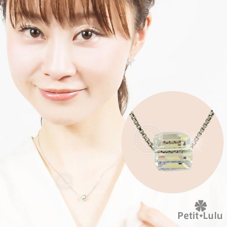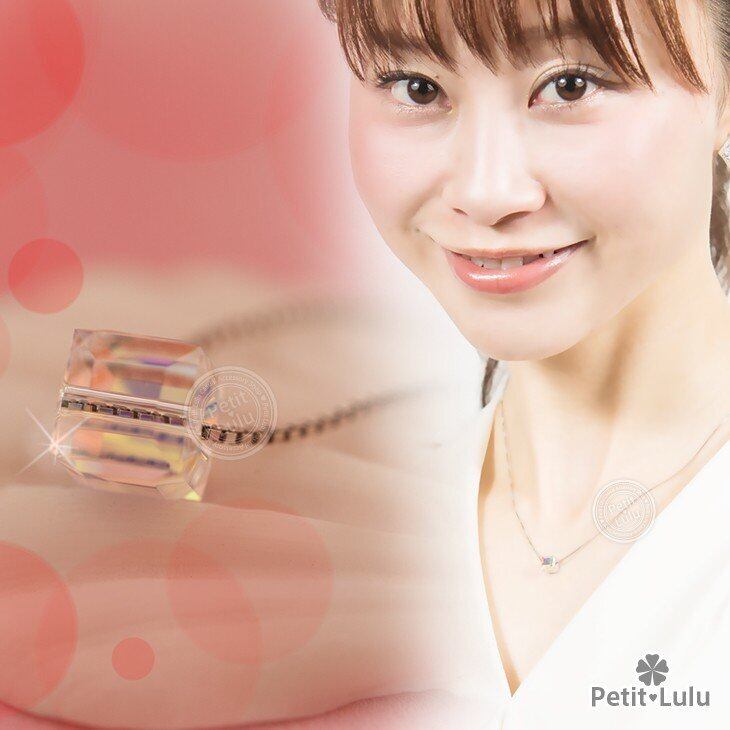 ネックレス レディース プラチナ仕上げ シルバー925 キューブ スクエア オーロラ クリスタル 誕生日 プレゼント ギフト 記念日