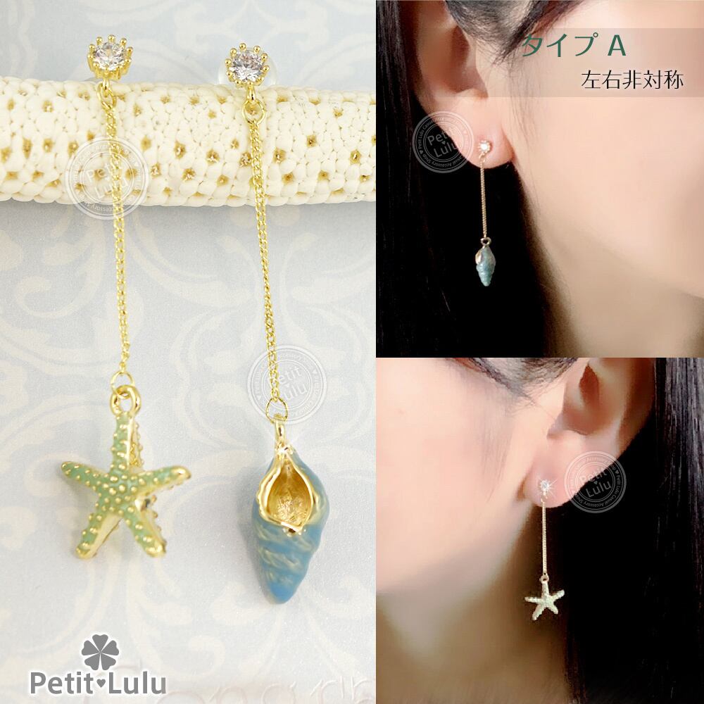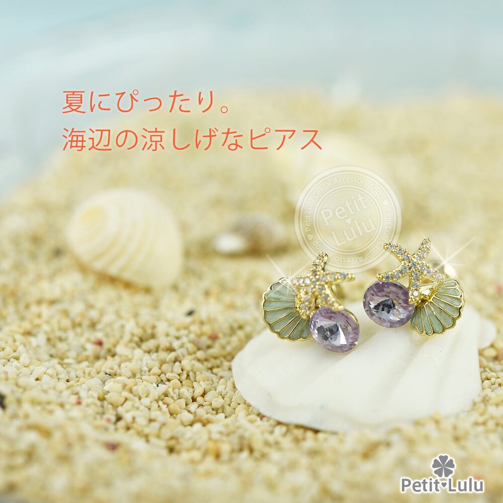 ピアス レディース 夏 海 ヒトデ 貝 揺れる ゴールド かわいい 女子 18金RGP 金属アレルギー対応 誕生日 プレゼント ギフト